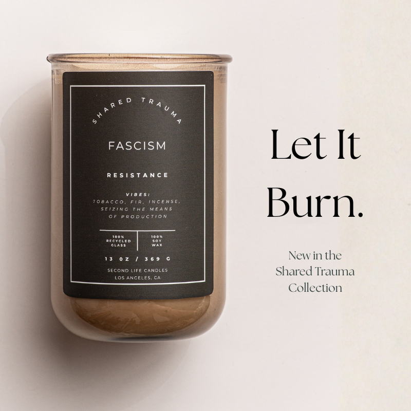 Shared Trauma Candles - Fascism - 13 Oz Crackling Wood Wick - Tobacco, Nag Champa, Forest Woods
