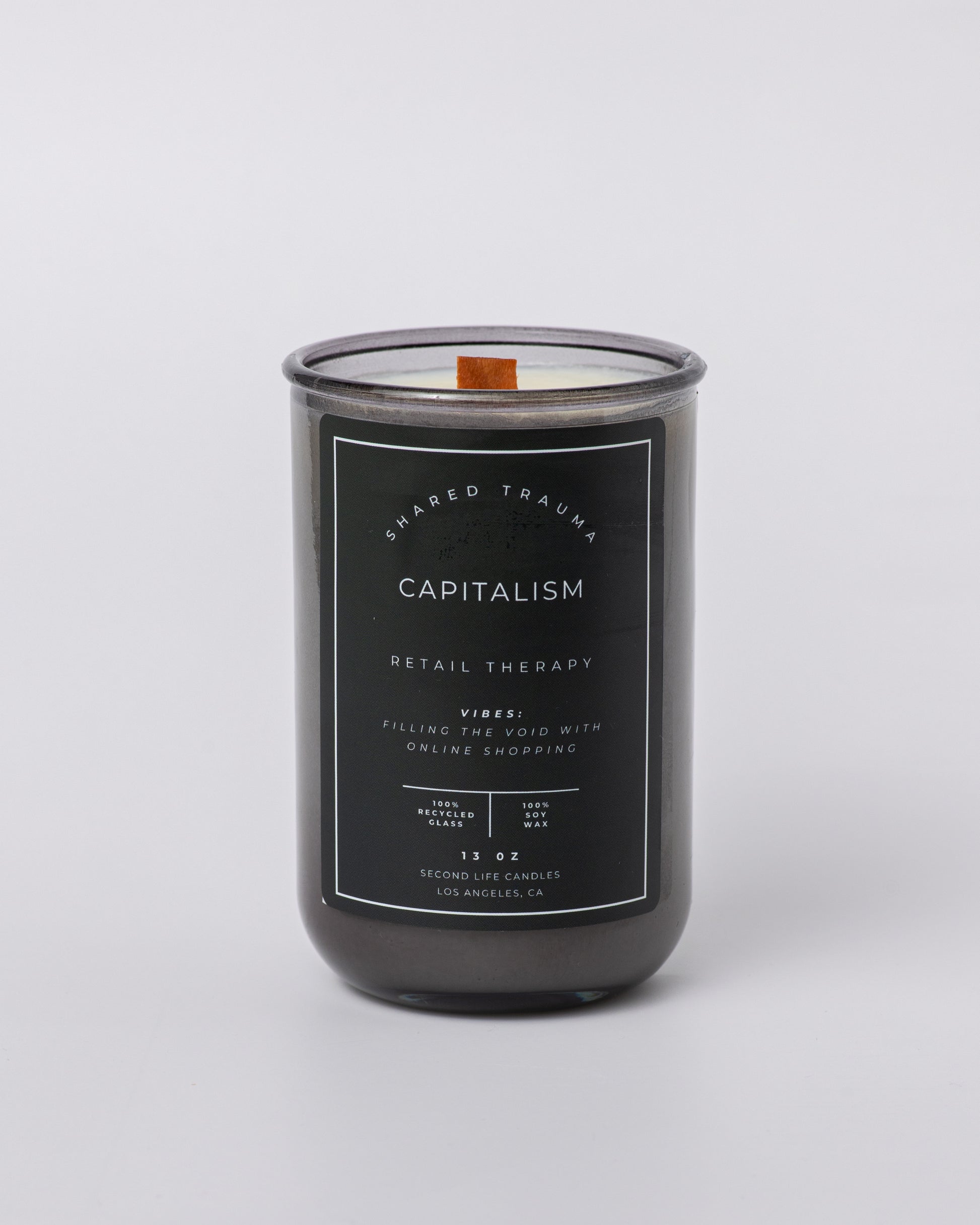 The Capitalism Shared Trauma candle will fill not just the void, but your entire room, with a deluxe perfume of sun-kissed tulips, peonies, and juicy peaches, and leave you feeling like a million bucks (even if your wallet disagrees).